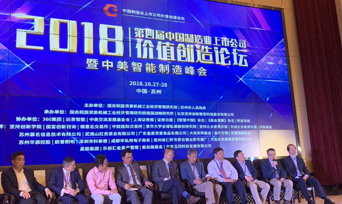 由國務(wù)院國資委機械工業(yè)經(jīng)濟管理研究院、蘇州市人民政府共同主辦的“2018第四屆中國制造業(yè)上市公司創(chuàng)造價值論壇暨智能裝備制造業(yè)創(chuàng)新發(fā)展峰會”于10月27日在美麗、富饒的蘇州舉行。本屆論壇致力于“發(fā)現(xiàn)制造業(yè)新價值,發(fā)掘制造業(yè)新標(biāo)桿”,實現(xiàn) “新價值高地、新科技領(lǐng)袖、新制造時代、新戰(zhàn)略路線”。