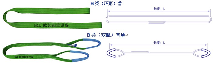 分類:根據(jù)加工工藝不同分為:圓環(huán)吊裝帶(簡稱A類吊裝帶)和扁平吊裝帶(簡稱B類吊裝帶)