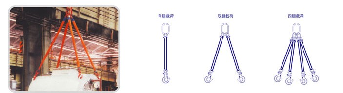 由主吊環(huán)、卸扣、吊裝帶及吊鉤等金屬末端件組成,根據(jù)不同客戶要求可組合成單腿吊帶索具、雙腿吊帶索具、三腿吊帶索具、四腿吊帶索具等,各金屬配件可根據(jù)實(shí)際使用需要靈活搭配選用,使用方便、質(zhì)量可靠。