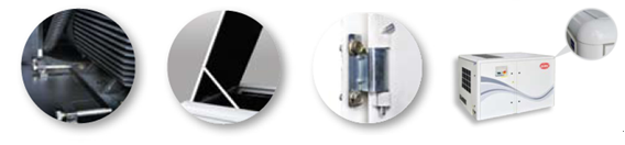 — -一體式冷卻模塊,專利設(shè)計(jì)的冷卻風(fēng)扇配合特別設(shè)計(jì)的導(dǎo)風(fēng)罩,有效降低了機(jī)組噪音,同時(shí)提高了機(jī)組的運(yùn)行效率 — 機(jī)組采用離心式風(fēng)扇 |